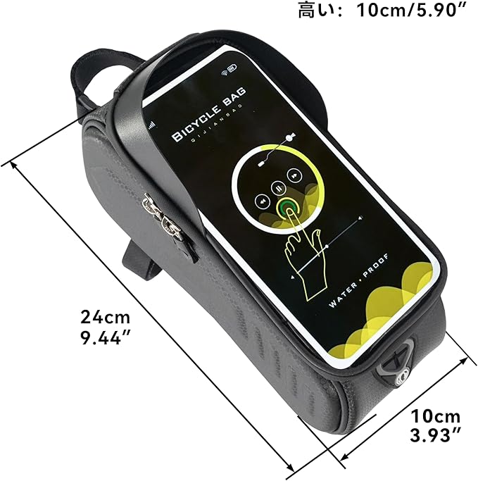 自転車バッグ 防水 トップチューブ フレームバッグ TPU高感度タッチスクリーン対応 スマホホルダー ロードバイク/MTB対応 24 10 15cm 170g 耐摩耗ハードシェル 取り付け簡単 小物収納