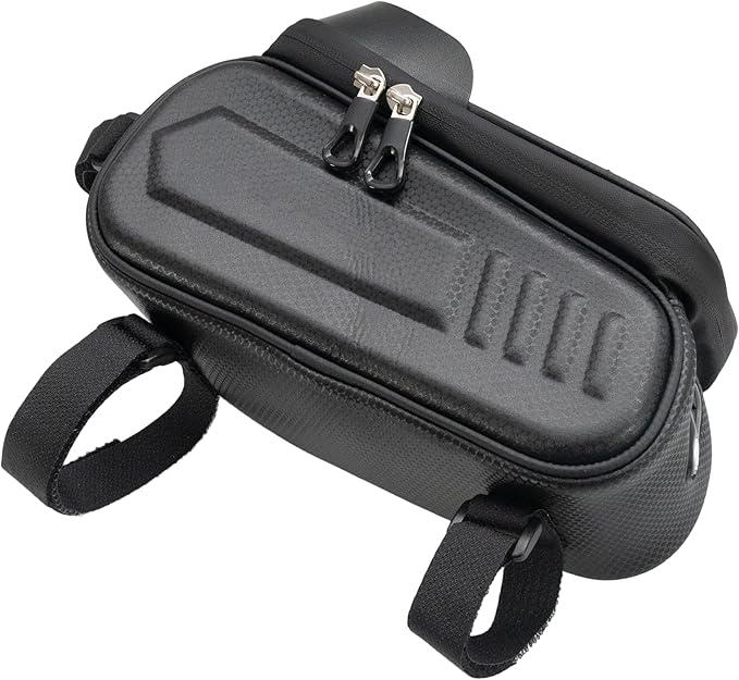 【頑丈で実用的】:耐摩耗ハードシェルと三重固定システム(マジックテープストラップ含む)で、走行中の揺れを最小限に抑えます。