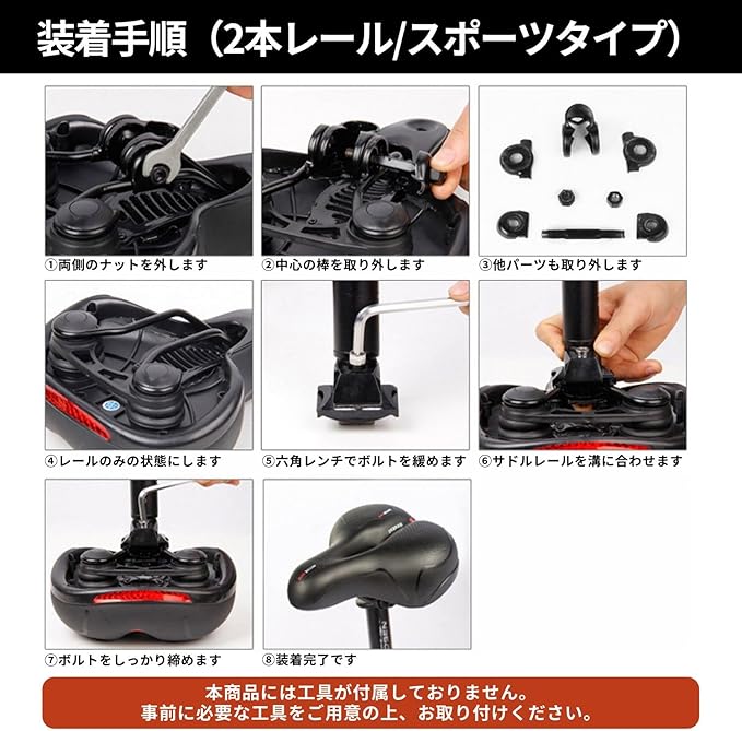 【最高の快適性】痛みを感じることなく、長時間のライドを楽しめるように、高密度クッションが施されています。滑り止め加工がされた座面は、不快なズレを防ぎ、腰への負担を軽減します。さらに、二つの球状サスペンションが衝撃を緩和し、快適な走行をサポートします。