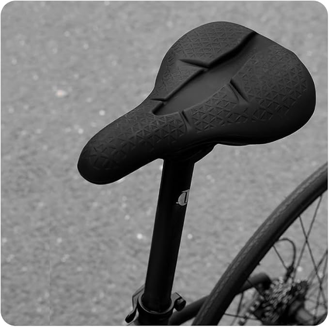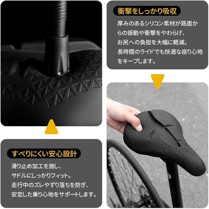 【やわらかシリコンで快適】厚みたっぷりのシリコン素材が衝撃を吸収。長時間のライドでもお尻が痛くなりにくく、通勤・通学にもぴったり。