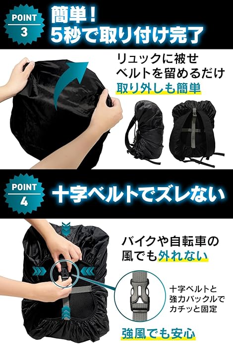 ✅【簡単!5秒で取り付け完了】リュックに被せベルトを留めるだけ。取り外しも簡単です!