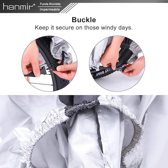【効果的&耐久性】PUとUVコーティングを施したバイクカバーは、ほこり、汚れ、太陽、雨、紫外線、汚染物質から自転車を保護します。 最大50度の紫外線耐性。 【安全で実用的】前輪エリアのロックホールデザインにより、カバーを付けたまま自転車のロックを使用できます。 ボトムはダブルステッチの伸縮性のある裾と特別なデザインのバックルでぴったりとフィットし、風の強い日でもしっかりとフィットします。 【便利&コンパクト】Hanmirの自転車カバーはコンパクトなサイズで、ベルクロのデザインで、自転車のフレームに締めたり、バスケットの中にきれいに配置したりできます。 【Lサイズ】78. 7 x 43インチ。 3 x 27インチ。 5インチ。ホイールサイズ29インチまでのほとんどの自転車に適しています。 マウンテンバイク、ロードバイク、ビーチクルーザー、モペットに最適です。