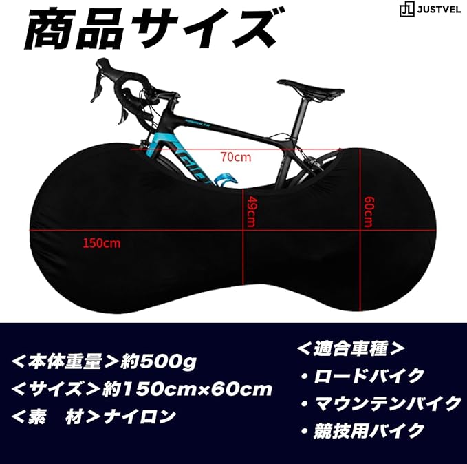 JUSTVEL 自転車カバー 自転車 保管 ロードバイク クロスバイク 室内保管 ホイールカバー 車載 輸送 持ち込み ストレッチ素材