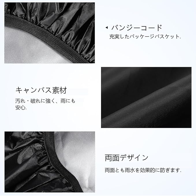 日焼け防止:UVカット機能があり、日差しから自転車のカゴや中身を守ります。長時間の直射日光による劣化を防ぎ、耐久性を向上させます。