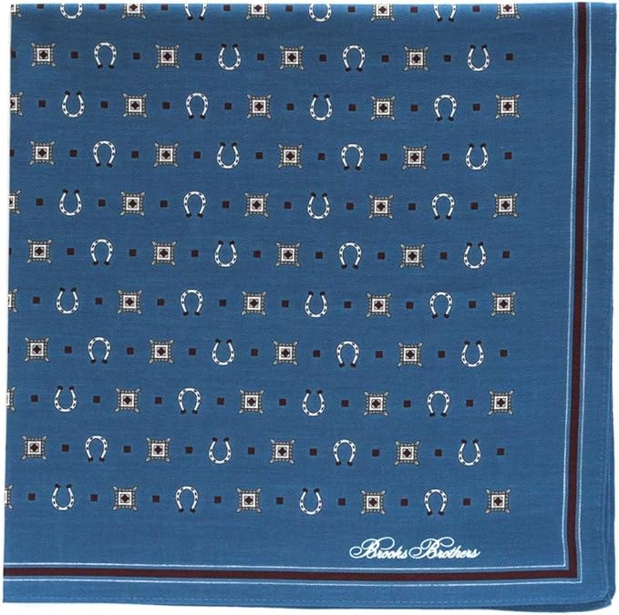 【 ブルックス ブラザーズ】 イージーケア プリントハンカチ 干支 蹄鉄 (ブルー) 紳士 メンズ ハンカチ ハンカチーフ 約50cm 001418-0001-01