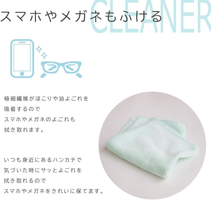 極細繊維がほこりや油よごれを吸着するので、スマホやメガネのよごれも拭き取れます。