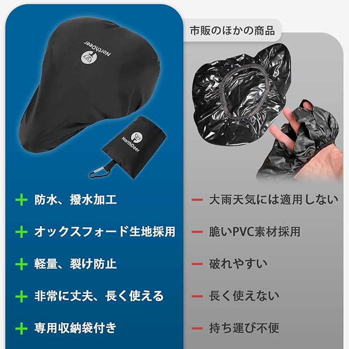 Northdeer 自転車用サドルカバー 防水カバー 2枚セット uvカット 汚れ防止 シームレス 収納袋付き