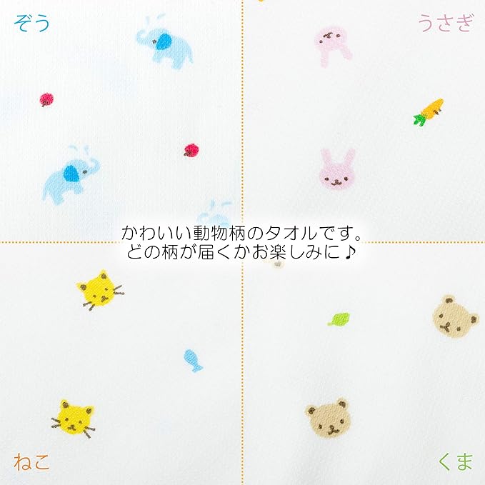nishikawa【西川】 ハンドタオル 4枚組 色柄おまかせ ハンドタオル ガーゼ&パイル 薄手 速乾 軽量 泉州 どうぶつ柄 日本製 TT39002005M