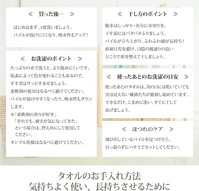 タオルの名産地・今治製で吸水性に優れ、やわらかな触感のタオルです。