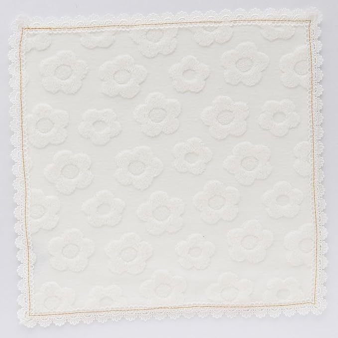 ブランドアイコンである「デイジー」の総柄を繊細に編み上げ、ケミカルレースが上品な一枚です。タオルハンカチのような吸水性と扱いやすさを兼ね備えながら、フォーマルシーンでもお使い頂けるアイテム。従来のものからサイズを一回り大きく、手を拭いたり使い勝手をよくしました。
