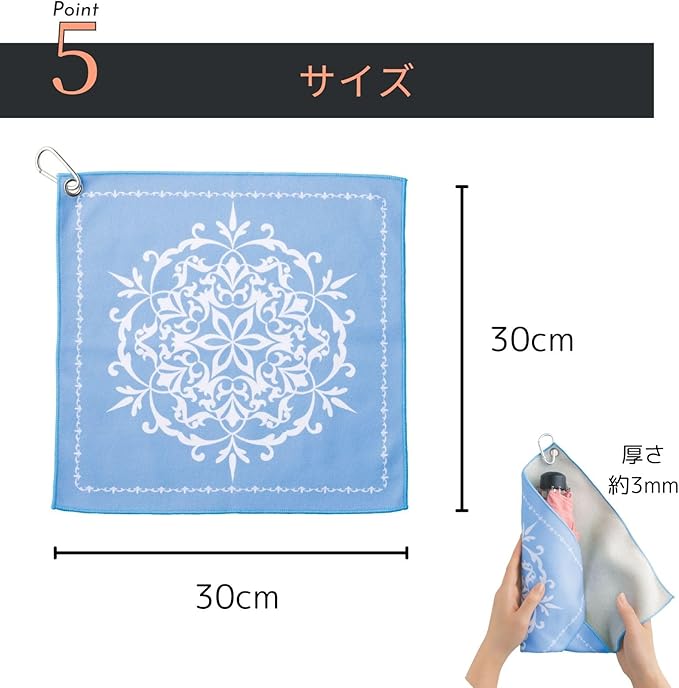 タオルとしてはもちろん、傘カバーやペットボトルカバーとしてもご使用いただけます。さらに、自由に形を変えられる柔軟なデザインなので、小物をまとめるポーチとしても便利。コンパクトに丸めて収納でき、付属のカラビナでバッグやリュックに簡単に取り付け可能です。通勤・通学・旅行・スポーツ・アウトドアなど、さまざまな場面でスマートにご活用いただけます。