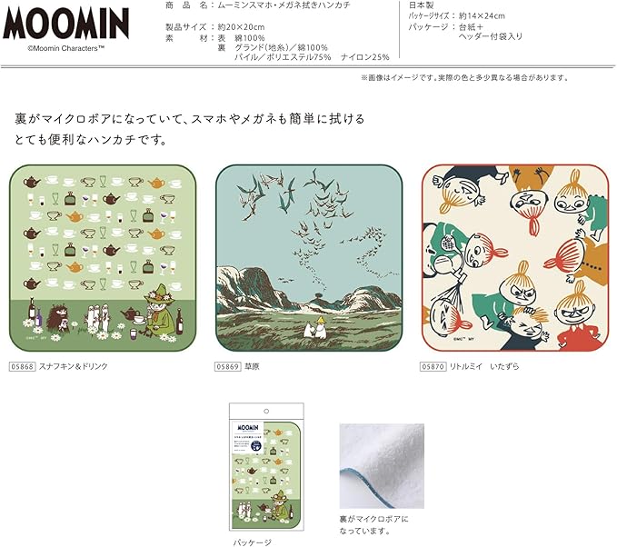 ミヤモトタオル 宮本 ハンカチ ムーミン スマホ・メガネ拭きハンカチ リトルミイ いたずら 日本製 ベージュ 約20 20cm 05870