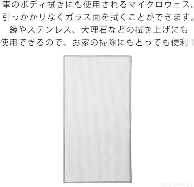 車のボディ拭きにも使用されるマイクロウェス表面がフラットな素材なので、引っかかりなくガラス面を拭くことができます。鏡やステンレス、大理石などの拭き上げにも使用できるので、お家の掃除にもとっても便利!