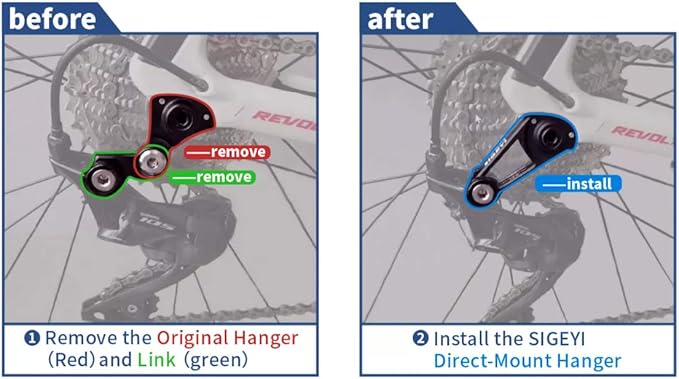 ※本製品を装着後、チェーンの長さが足らなくなる場合があります。別途チェーンの交換や変速の調整をする必要があります。