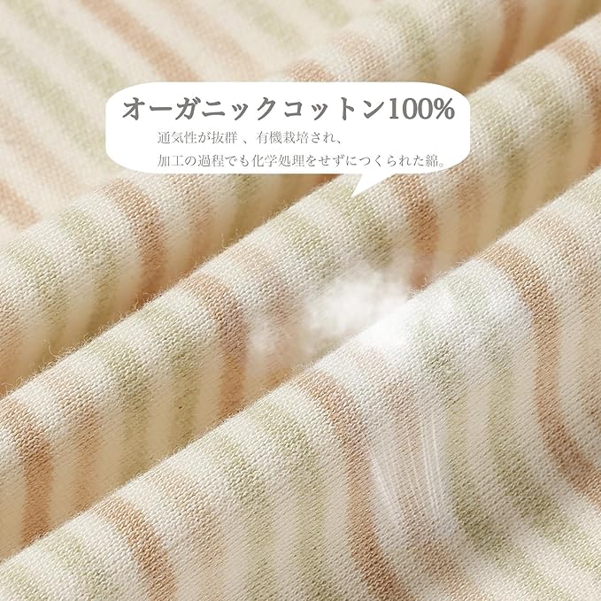 オーガニックコットン100%の素材を使用しており、肌に優しく、通気性に優れています。