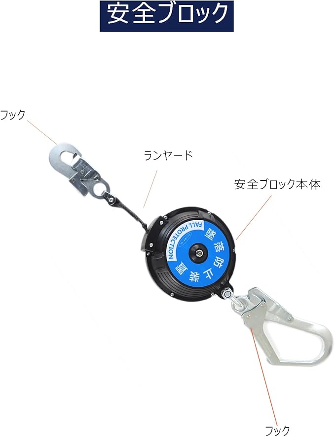 [Ulmior] 安全ブロック 8M 墜落防止装置(仮設用) 昇降用 安全 ブロック 昇降墜落防止装置 衝撃吸収 巻取式安全ブロック 引寄せロープ 取り付き説明書 収納バッグ [落下防止 電気工事 安全帯 高所での安全作業]
