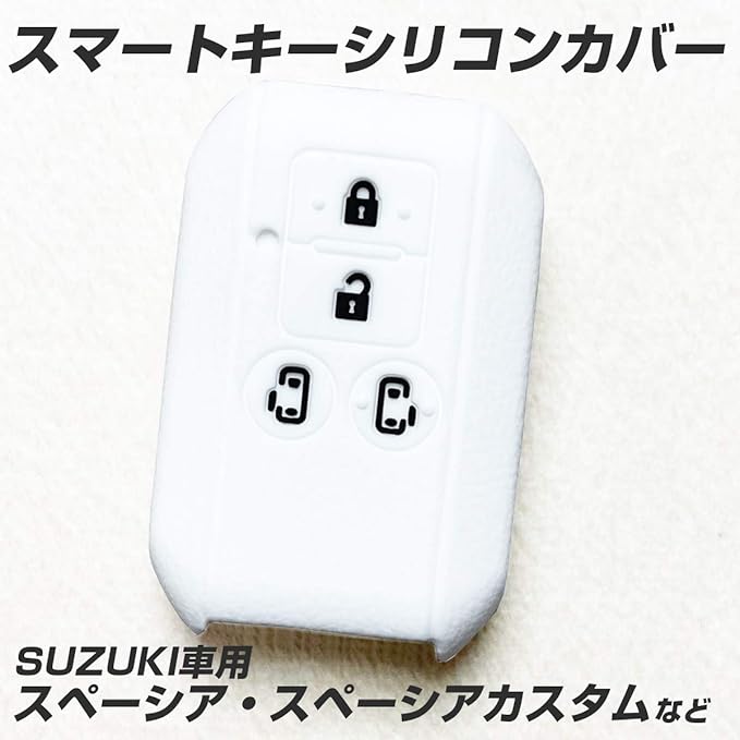 【IKT】スズキ/マツダ車用 スマートキー用シリコンカバー 4ボタン ホワイト/スペーシア/スペーシアカスタム/フレアワゴン/フレアワゴン カスタムスタイル/両側スライドドア車用/など 専用設計でピッタリサイズ!傷防止に最適!さらさらシリコンで手触り快適!鈴木/MAZDA車用(SZ-014WH)