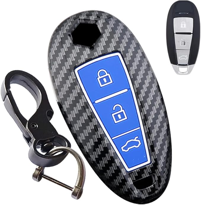 キーケーススズキ用 スマートキーケース キーカバー ABS プラスチック カーボン調 3ボタン スズキ専用設計SUZUKI SX-4 S-CROSS イグニス エスクード スイフト バレーノ等に適用 キーホルダー