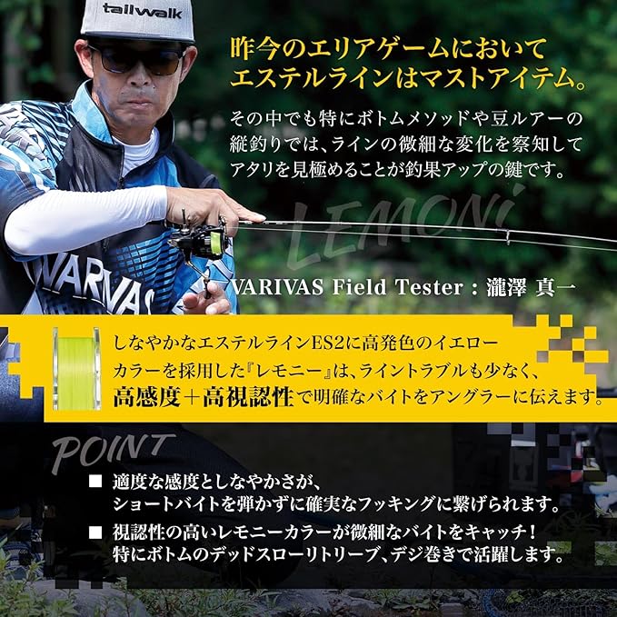 VARIVAS(バリバス) スーパートラウトエリア ES2 (エスツー) エステル レモニー 80m【しなやかなエステルライン/低伸度/高感度/エリアトラウト/管理釣り場】