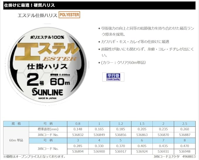 サンライン(SUNLINE) ハリス エステル仕掛ハリス ポリエステル 60m クリア