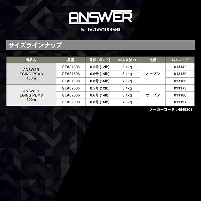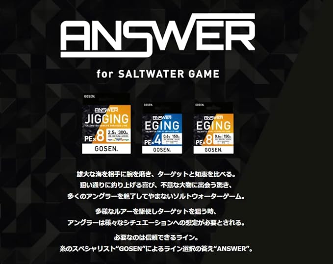日本国内に自社工場を持つゴーセンより、エギング専用ブレイドライン「ANSWER EGING PE」が誕生!!