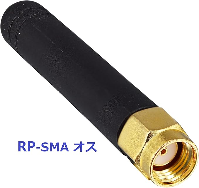 製品名: 小型WiFiアンテナデュアルバンド(2.4GHz・5.8GHz、無指向性)、コネクタタイプ:RP-SMAオス(穴、内ネジ)。インピーダンス:50Ω、低損失。 | 最大入力電力:50W。|長さ:5cm。|重さ:6g
