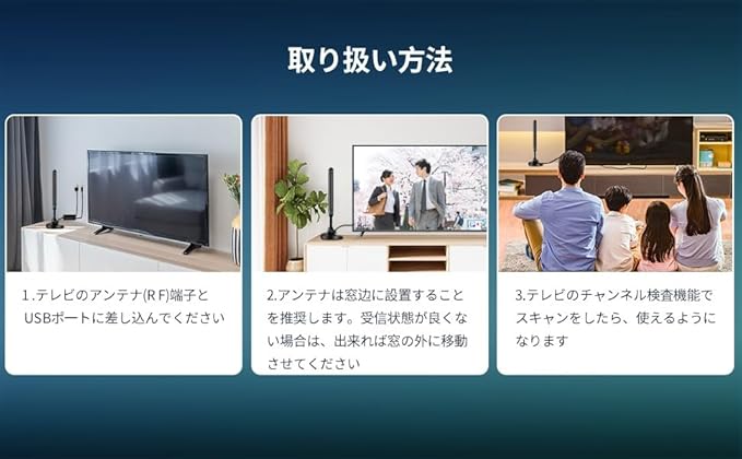 【簡単セットアップ、工具不要】プラグアンドプレイで簡単にセットアップできます。 アンテナを窓の近くに置いて受信を良くし、必要に応じて位置を調整します。