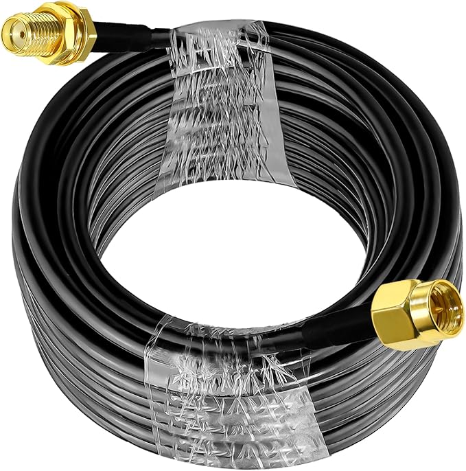 ケーブルの種類と詳細: SMA オス - SMA メス同軸ケーブル; アダプタの種類: SMA; ケーブルの種類: RG58; 導体材質: 純銅; ケーブル長: 49.2 フィート (15 メートル); インピーダンス: 50 オーム、低損失