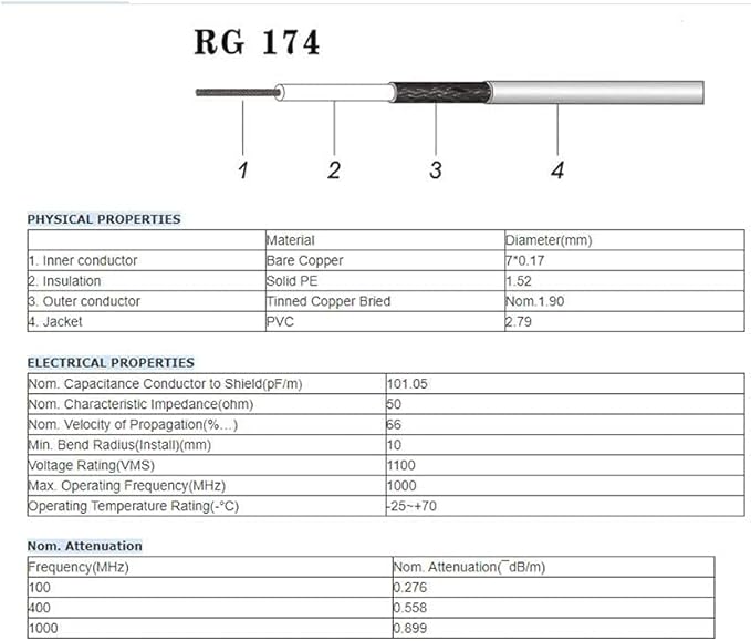 ✪ RG174同軸ケーブルは低損失で高周波に対応します。