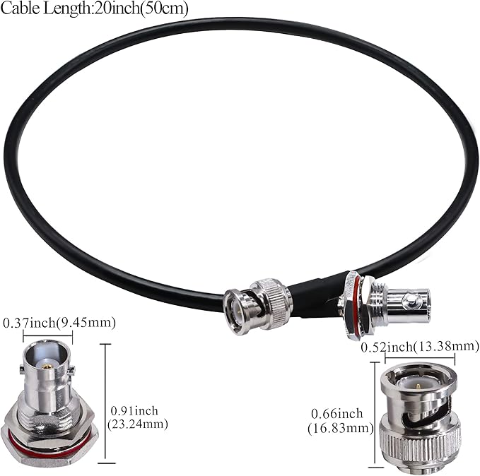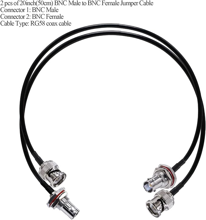 BNCジャンパーケーブル RG58 TUOLNK BNCオス-BNCメスバルクヘッ 50オーム CB無線 同軸 ケーブル 20インチ(50cm)アマチュア 無線 アンテナセキュリティ用 Wifi アンテナ 延長 ケーブルCCTV システム 2本