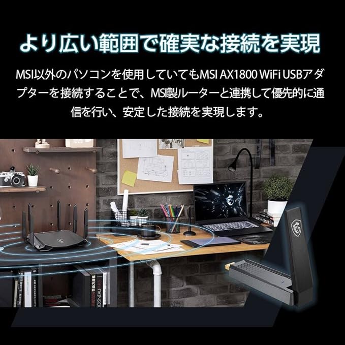 MSI AX1800 WiFi USB アダプター 無線LAN 子機 GUAX18 デュアルバンド1201Mbps(5GHz) +574 Mbps(2.4GHz) 外部アンテナ/USB3.2 Gen1接続 802.11ac対応 MU-MMO/OFDMA機能搭載 メーカー保証3年