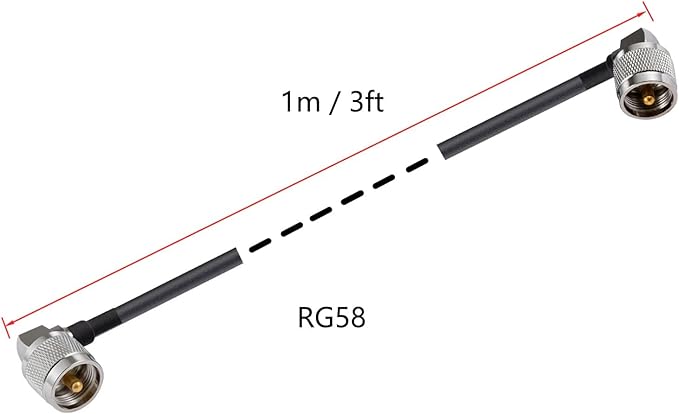 コネクタ1:UHFオス PL-259 直角 | コネクタ2:UHFオス PL-259 直角 | ケーブルタイプ:RG58 | ケーブル長:3フィート/1メートル | インピーダンス:50オーム