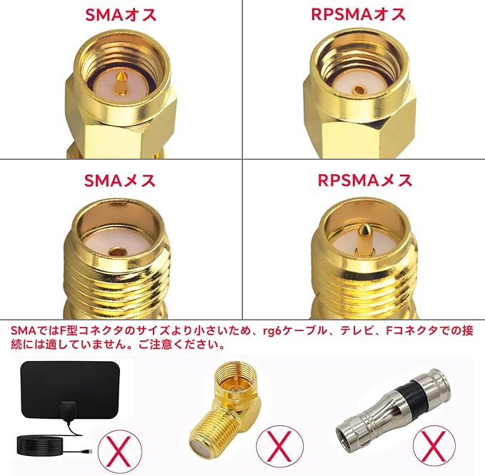 「詳細」:コネクタ::SMAオス-SMAオス|材質:接続性に優れた純銅(合金ではない) | 表面処理:0.05厚付け金メッキ | インピーダンス:50Ω、低損失 | 最大周波数:6GHz | VSWR:≤1.2 | 耐久:> 500回の差し抜き。