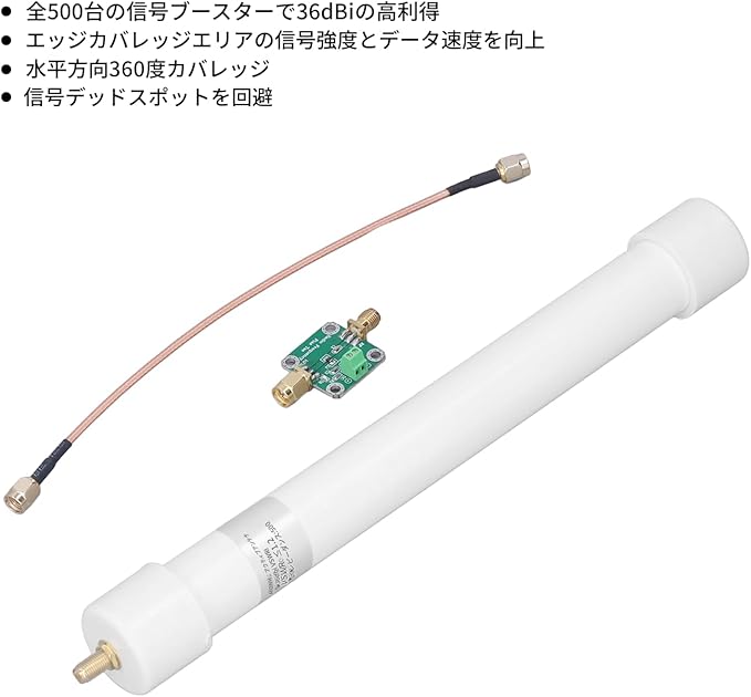 【36dBi 高利得】受信アンテナは50Ω 信号ブースターとの組み合わせで最大 36dBi の高利得を実現,エッジカバレッジエリアでの信号強度を大幅向上。微弱な ADS-B 信号も確実に捕捉し、データ伝送速度を高めます。