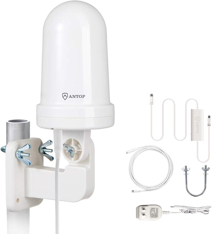 ANTOP 地上デジタルアンテナ 室外 HD テレビ 地デジ アンテナ TVアンテナ UFOアンテナ UHF対応 スマートパス増幅 360度全方位受信 5M同軸ケーブル付き 防水 抗UV 屋根裏用/RV用 設置簡単 AT-JP416B