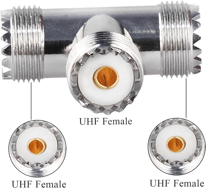 M型同軸コネクタ UHFトリプルティーコネクタ UHF メス-デュアル UHF メス3ウェイスプリッター 同軸 アダプター PL259 SO239 アマチュア 無線 CB アンテナ 2パック用T字型アダプター