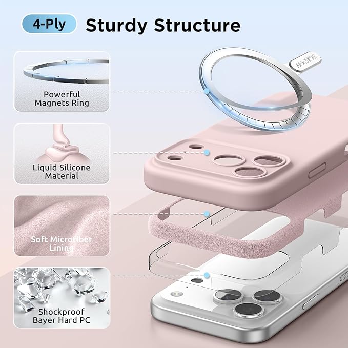 SURPHY iPhone 17 Pro Max 用ケース シリコン MagSafe対応,6.9インチ対応(2025) スマホケース iPhone 17 Pro Max(カメラの全面保護) マグネット搭載 アイフォン17 プロ マックス用ソフトカバー(ピンク)