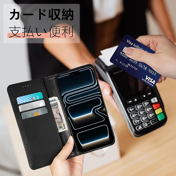 カード収納:アイフォン 17 プロマックス ケース内側には便利なカードポケットが付属しており、名刺やクレジットカード、IDカードを収納可能です。ご注意:収納枚数やカードの厚みによっては、蓋が閉まらない場合がありますのでご了承ください。