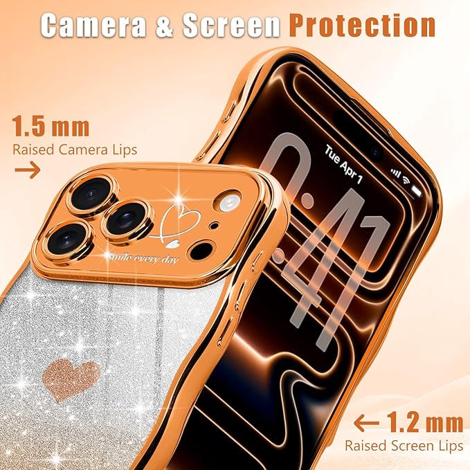 Teageo iPhone 17 Pro Max 対応 ケース キラキラ カーリー ウェーブ 軽薄型 柔らかく シリコン 衝撃保護 落下防止 携帯電話カバー 適用 iPhone 17 Pro Max スマホケース(オレンジ)