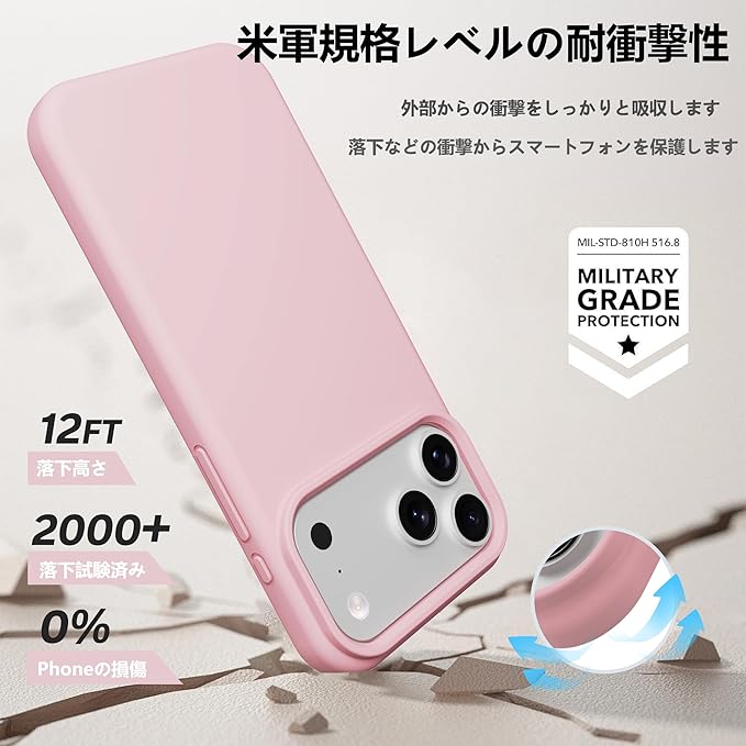 対応 iPhone 17 Pro Max ケース シリコン 耐衝撃 スマホケース 指紋 防止 サラサラ 衝撃吸収 頑丈 シリコンケース カバー(ローズピンク, 17 Pro Max)