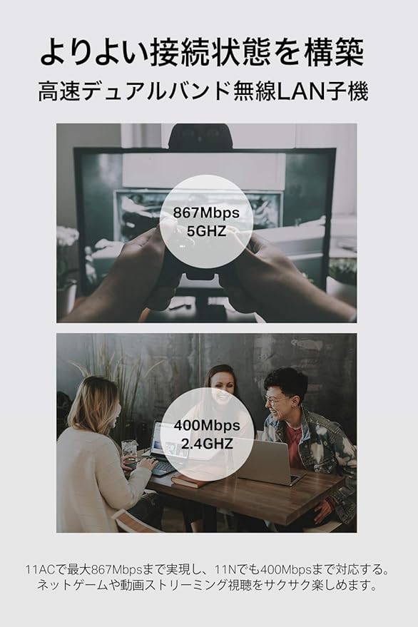 [特長] MU-MIMO対応無線LAN子機。400+866Mbpsの無線LAN速度。