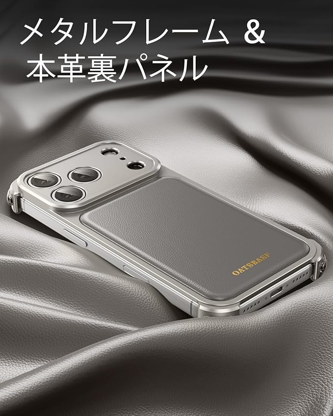 OATSBASF for iPhone 17 Pro Max ケースフルカメラ保護 MagSafe 充電器対応 メタルフレーム 本革製バックパネル