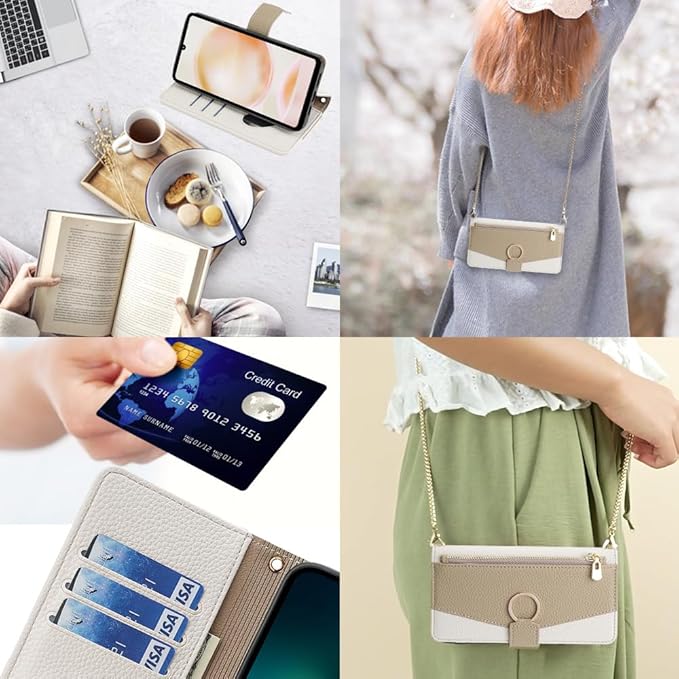 for iPhone 17 Pro Max ケース 手帳型 ショルダー for iPhone 17プロ マックス 財布型 カバー 肩掛け 斜めがけ 化粧鏡付き 女性 おしゃれ ロングストラップ ジッパー小銭入れ カード収納 横置き 上質な手触り 耐汚れ気質 肌感レザー 防指紋 耐久性 贈り物 COCOCLOUD ホワイト