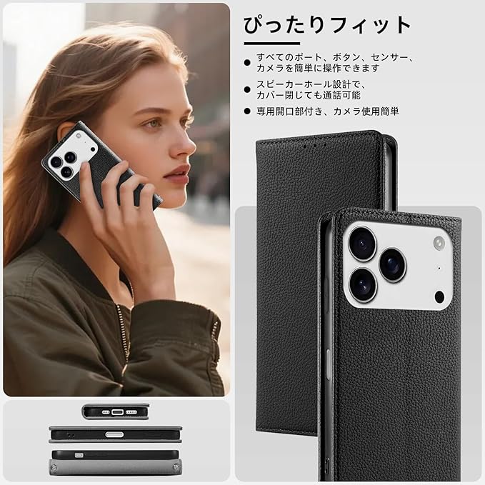 [対応機種]:このエレガントな財布型スマホケースは、iPhone 17 Pro Max専用に設計されています。購入前に、ご使用のスマホのモデルとカラーを確認してください。専用のカメラ開口部により、ケースを装着したままでも、スムーズにカメラ撮影が行えます。