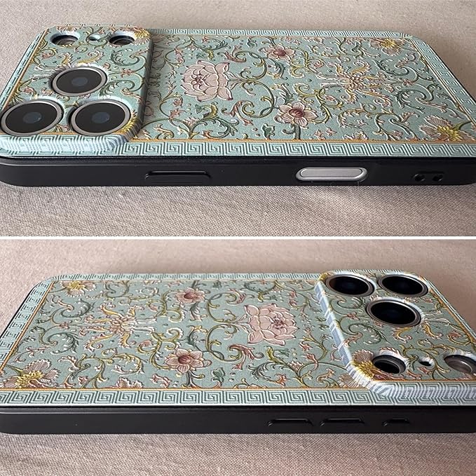 KOLO【蓮華】iPhone対応 17 Pro Max スマホケース シノワズリ 中国風 中華風 はす ハス ロータス カバー(黄緑) iPhone17 Pro Max
