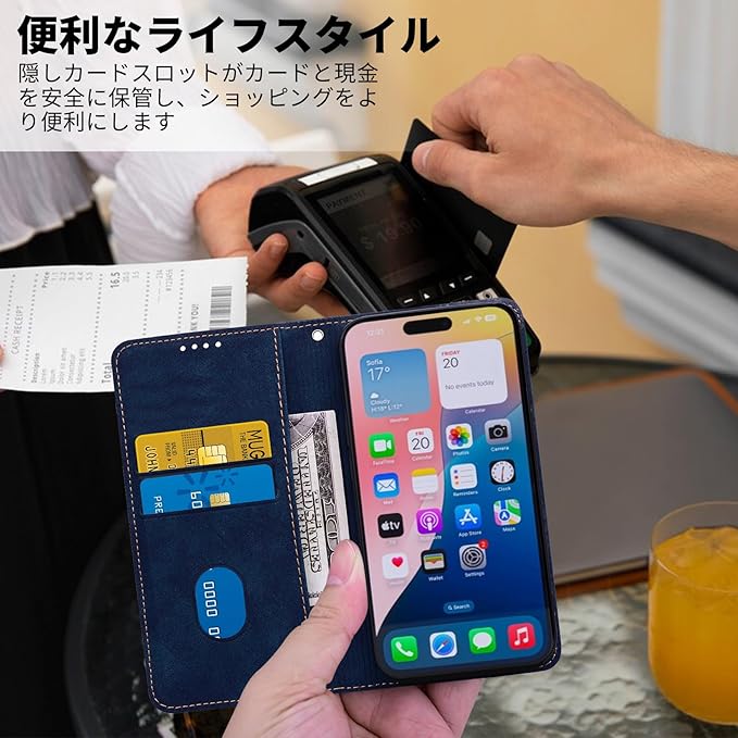 カード収納:この アイホン17pro max 手帳型ケースには、2つのカードポケットと1つのサイドポケットがあり、クレジットカードやレシート、名刺、お札などをしっかり収納できます。ショッピング、旅行、仕事、あらゆる場面で活躍します。