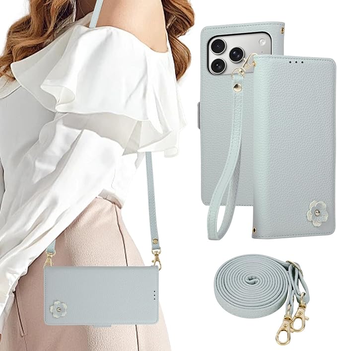 用の iphone 17 Pro Max ケース 手帳型 ショルダー さくら スマホケース いphone17promax ケース 手帳型 オシャレ 財布型 カード収納 携帯ケース iphone17promax ケースカバー ストラップ付き スタンド機能 耐久性 軽量 アイフォン17pro max 手帳型ケース 可愛い 人気 女性 上品 桜の花 贈り物(ブルー)