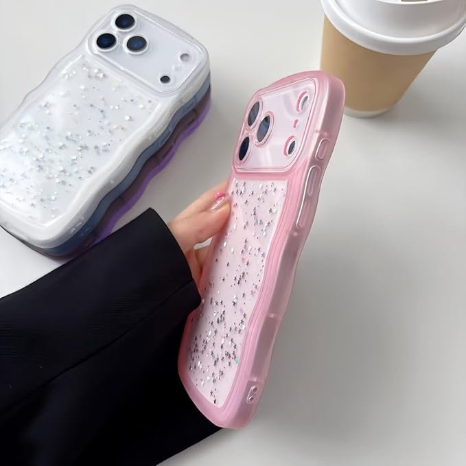 きらきら対応 iPhone 17 Pro Max ケース クリア 透明 ラメ入り 星 キラキラ ウエーブ 波型フレーム かわいい 17 Pro Max 用カバー 大人 可愛い デコレーション 女性 人気