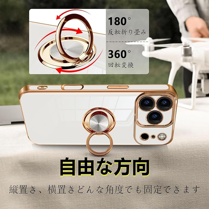 【360 マルチアングルリングスタンド】対応iphone17 promax リング付きケースの強化リングは360 回転&180 角度調整可能。片手操作防止に加え、スタンド機能付きで動画視聴・ビデオ通話をハンズフリー化。