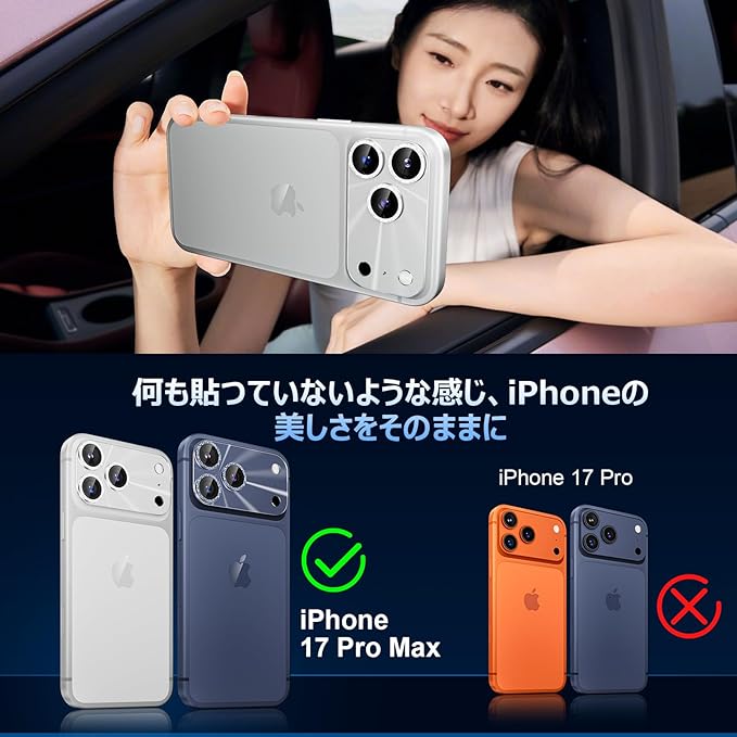 【2025最新版・ぴったりフィット一体感】台座部分はスマホ本来の美しさを損なわない透明なデザイン、レンズカバー部分はスマホ本体と同じ色で本体と完全に融合していく、一体感が溢れています。さらに、カメラレンズに合わせて正確に設計されて、引っかかり感なく、ほとんどのケースと干渉しません。安心してご利用いただくために、万が一品質に問題が発生した場合、弊社にご連絡いただければ迅速に対応いたします。